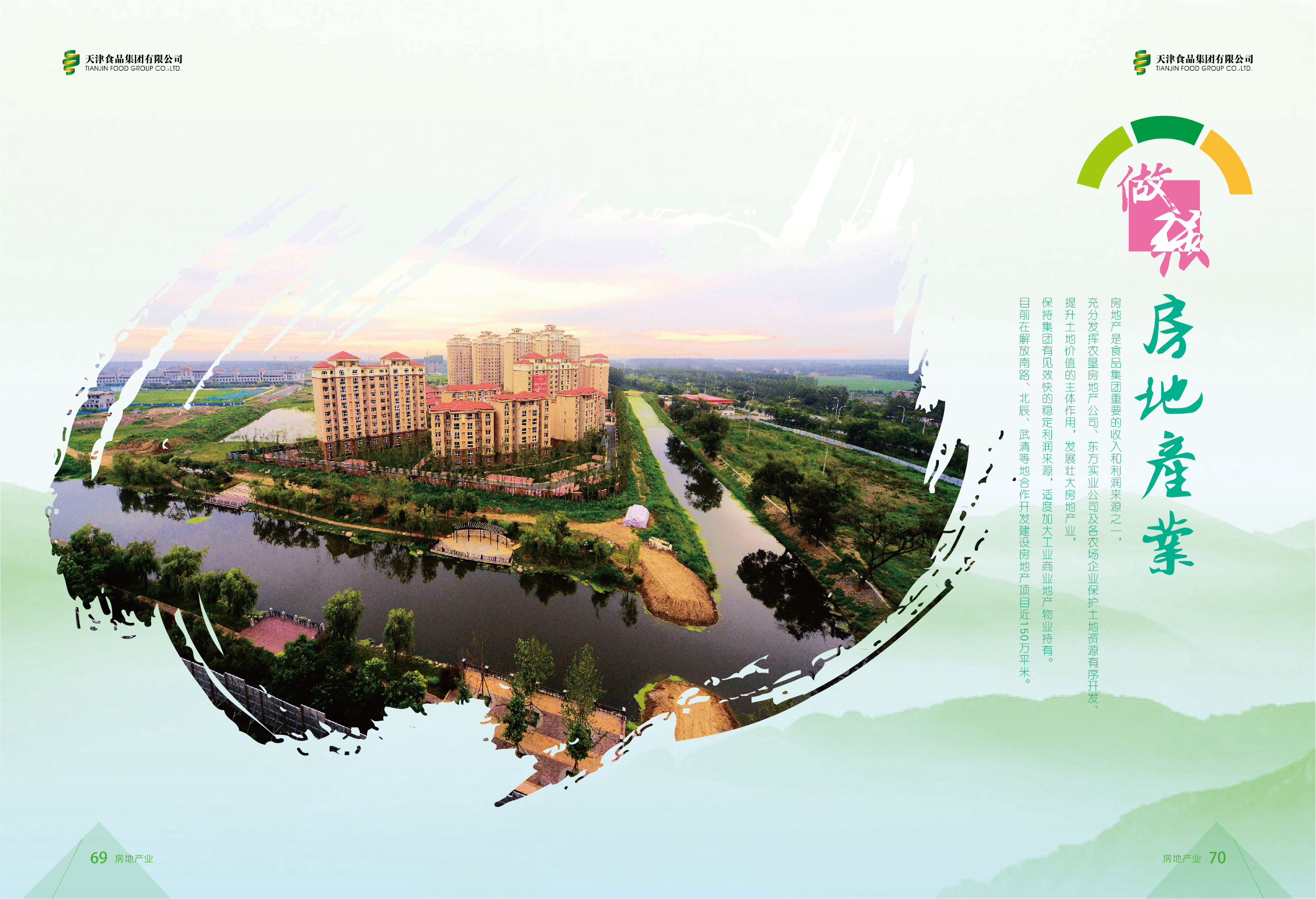 Real estate is an important source of income and profit for Tianjin Food Group. Oriental Industrial Co., Ltd, Hongda Company, Agriculture Reclamation Real Estate Company, Leadar Real Estate Company and other farm enterprises fully play their role in protecting the orderly development of land resources and enhancement of land value. These key companies expand real estate business, keep a stable profit source for the Group and moderately increase the holding of industrial and commercial real estate.