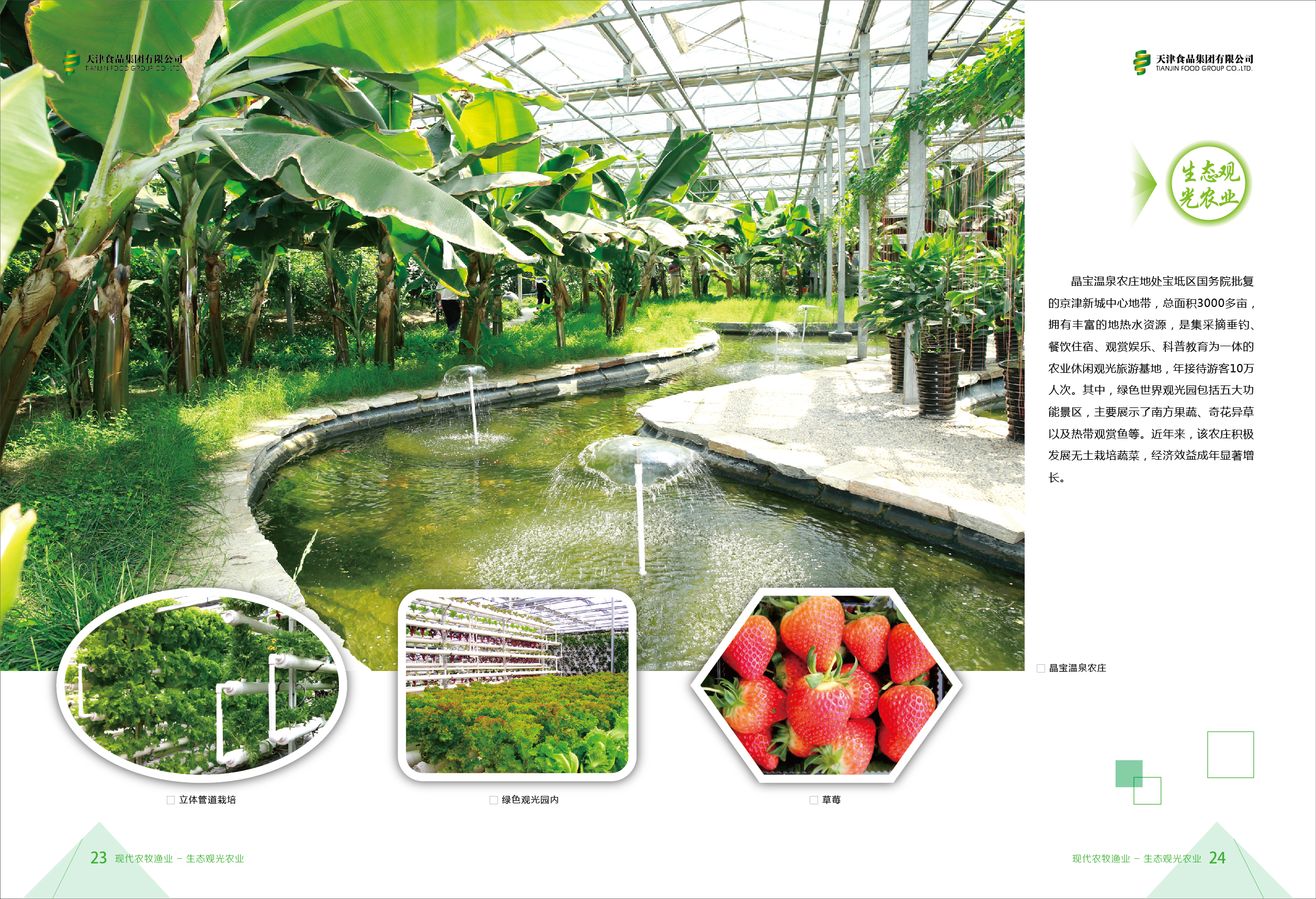 Jingbao Hot Spring Farm is located in the heartland of Beijing-Tianjin New Uptown, a residential area approved by the State Council. It belongs to the Baodi District, and has a total area of more than 3,000 Chinese mu. With a rich geothermal water resource, the Farm is a tourist attraction which offers services like fruit and vegetable picking, fishing, catering and agritourism. It receives 40,000 visitors annually. The Farm also grows rare plants with the help of soilless culture technique, plants fruit trees from the south and builds greenhouses for picking activities, bringing significant economic growth.