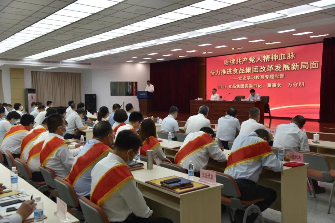 萬(wàn)守朋以《賡續(xù)共產(chǎn)黨人精神血脈 奮力推進(jìn)食品集團(tuán)改革發(fā)展新局面》為題,圍繞銘記黨的奮斗歷程,矢志不渝推進(jìn)黨的偉大事業(yè);集團(tuán)改革發(fā)展的生動(dòng)實(shí)踐,彰顯集團(tuán)系統(tǒng)各級(jí)黨組織的凝聚力戰(zhàn)斗力和廣大黨員的先鋒本色;大力弘揚(yáng)中國(guó)共產(chǎn)黨人的擔(dān)當(dāng)精神,再接再厲、攻堅(jiān)克難,建功新時(shí)代等三方面,講授了黨史學(xué)習(xí)教育專題黨課,激勵(lì)廣大黨員干部職工進(jìn)一步奮發(fā)有為,為集團(tuán)“十四五”開(kāi)好局,起好步再做新的貢獻(xiàn)。