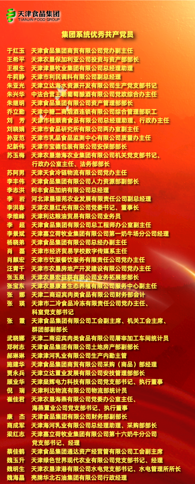 6月29日上午,天津食品集團(tuán)召開(kāi)“兩優(yōu)一先”表彰會(huì)暨黨史學(xué)習(xí)教育專題黨課。熱烈慶祝中國(guó)共產(chǎn)黨成立100周年,總結(jié)黨史學(xué)習(xí)教育階段工作,部署下階段工作重點(diǎn),表彰近一年來(lái)涌現(xiàn)出的先進(jìn)基層黨組織、優(yōu)秀共產(chǎn)黨員和黨務(wù)工作者,啟動(dòng)“奮戰(zhàn)下半年,確保開(kāi)好局”活動(dòng),并由集團(tuán)黨委書(shū)記、董事長(zhǎng)萬(wàn)守朋講授黨史學(xué)習(xí)教育專題黨課。