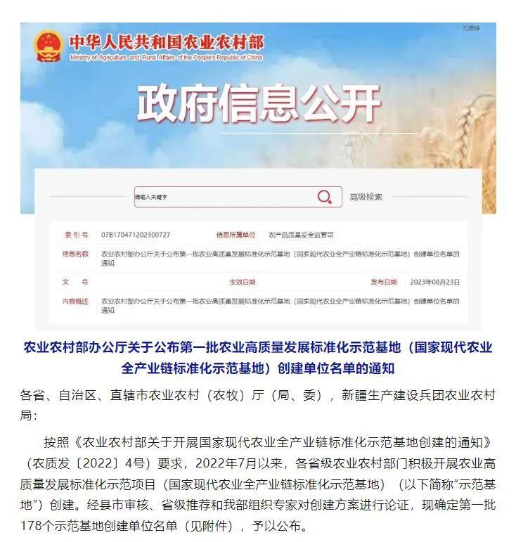 近日,農(nóng)業(yè)農(nóng)村部發(fā)布了《農(nóng)業(yè)農(nóng)村部辦公廳關(guān)于公布第一批農(nóng)業(yè)高質(zhì)量發(fā)展標(biāo)準(zhǔn)化示范基地(國(guó)家現(xiàn)代農(nóng)業(yè)全產(chǎn)業(yè)鏈標(biāo)準(zhǔn)化示范基地)創(chuàng)建單位名單的通知》,嘉立荷牧業(yè)公司榜上有名。