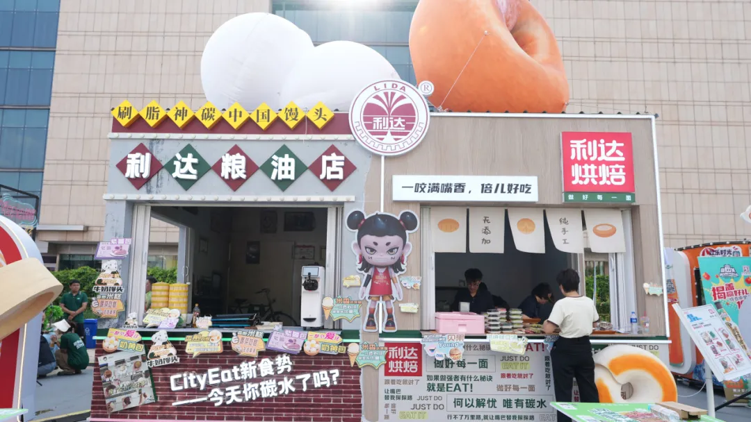 展區(qū)主要展示利達(dá)主食與利達(dá)烘焙兩個(gè)系列產(chǎn)品,結(jié)合年輕主題,搭建了以“饅頭-中國(guó)刷脂神器”為主題的互動(dòng)打卡點(diǎn),設(shè)立打卡贈(zèng)送“漆畫扇”活動(dòng),更好地向年輕群體宣傳了利達(dá)品牌,打破消費(fèi)者對(duì)利達(dá)的固有認(rèn)知,和年輕的消費(fèi)群體展開友好的交流,為消費(fèi)者提供多“young”性的優(yōu)質(zhì)碳水選擇。此外,結(jié)合夜市消費(fèi)場(chǎng)景,新研發(fā)的利達(dá)花樣主食土豆、紫薯、香煎肉花卷、利達(dá)鍋巴菜貝果等,一經(jīng)推出,立即成為市集的網(wǎng)紅產(chǎn)品,深受消費(fèi)者喜愛。