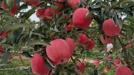 走進(jìn)果園,蘋(píng)果樹(shù)縱橫排列,一顆顆鮮艷如滴的“中秋王”蘋(píng)果壓彎了枝條,在這里,游客可以親手摘下中意的果實(shí),享受采摘的樂(lè)趣。