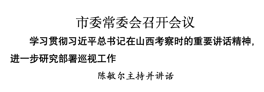 本報訊(記者 于春灃 劉國棟)7月13日,市委常委會召開會議,學習貫徹習近平總書記在山西考察時的重要講話精神,進一步研究部署巡視工作。市委書記陳敏爾主持會議并講話。