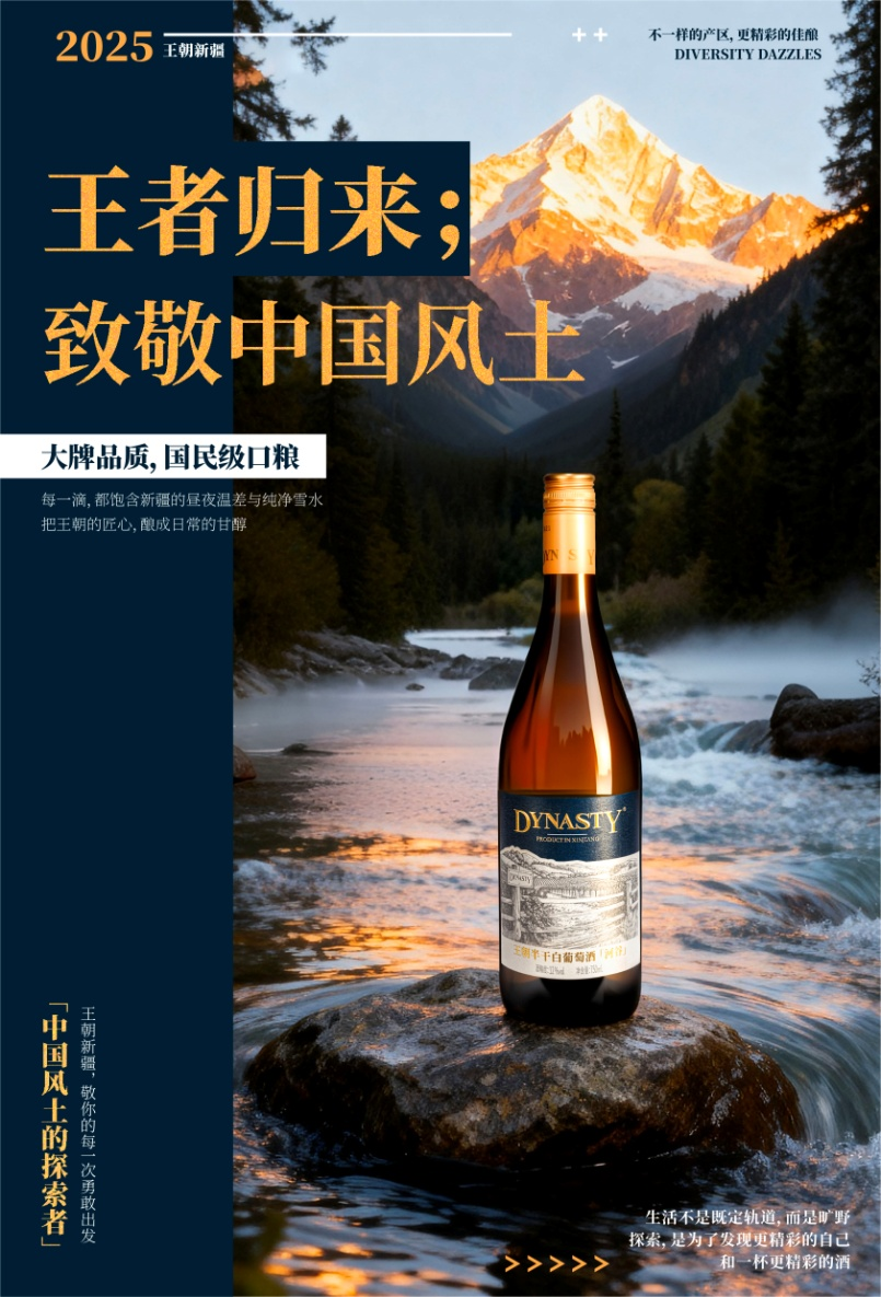 王朝半干白葡萄酒(河谷)(2025)源自北緯44°天山北麓“黃金產(chǎn)區(qū)”。該產(chǎn)區(qū)依托充足日照與顯著的晝夜溫差,為葡萄積累了飽滿的風(fēng)味物質(zhì)。這款酒融合了王朝40余年的精湛釀造技藝,呈澄澈淺金黃色澤,散發(fā)著白桃、柑橘的鮮活果香,伴隨淡淡花香與礦物質(zhì)感。入口甜酸平衡,酒體輕盈順滑,余味干凈清爽,盡顯雅致風(fēng)格,精準(zhǔn)傳遞出中國風(fēng)土的獨特魅力。其兼具傳統(tǒng)底蘊與年輕化表達的特點,不僅贏得了大學(xué)生評委對風(fēng)味適配度的認可,更獲得了專家評審對風(fēng)土詮釋力的高度評價。