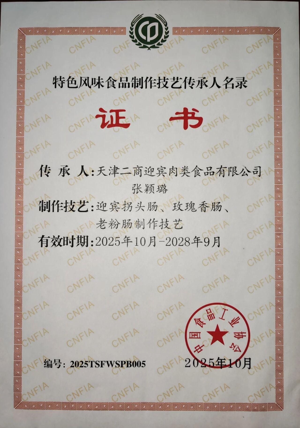 近日,中國(guó)食品工業(yè)協(xié)會(huì)公布第二批“特色風(fēng)味食品標(biāo)志性產(chǎn)品、制作技藝傳承人名錄”。迎賓公司黨委副書(shū)記、總經(jīng)理張穎璐獲評(píng)“特色風(fēng)味食品制作技藝傳承人”;迎賓拐頭香腸、迎賓玫瑰香腸、迎賓老粉腸入選“特色風(fēng)味食品標(biāo)志性產(chǎn)品”。