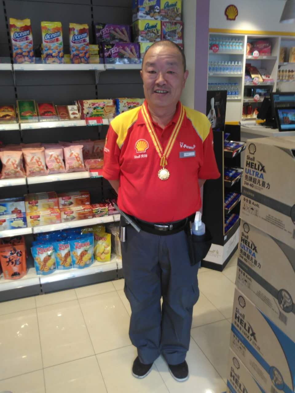 2001年-2002年,在殼牌開展為期六個季度服務(wù)標兵評選活動中,每一階段,王師傅均被評為服務(wù)標兵。曾有一次, 殼牌中國的同事來到白堤路油站參觀,交流之余問起王師傅:“您身邊的同事要是情緒不好是不是會影響到您。”老師傅很自信的說:“不可能,只有我能影響別人,別人不會影響到我。”王師傅就是這么自信,他始終會把他良好的工作狀態(tài)一直傳遞給身邊的每一位同事,正是由于年復(fù)一年、日復(fù)一日的努力工作使其獲得了“2015殼牌全球微笑之星”的榮譽稱號,并作為中國員工代表到日本參加全球盛典,接受殼牌授予的最高榮譽。