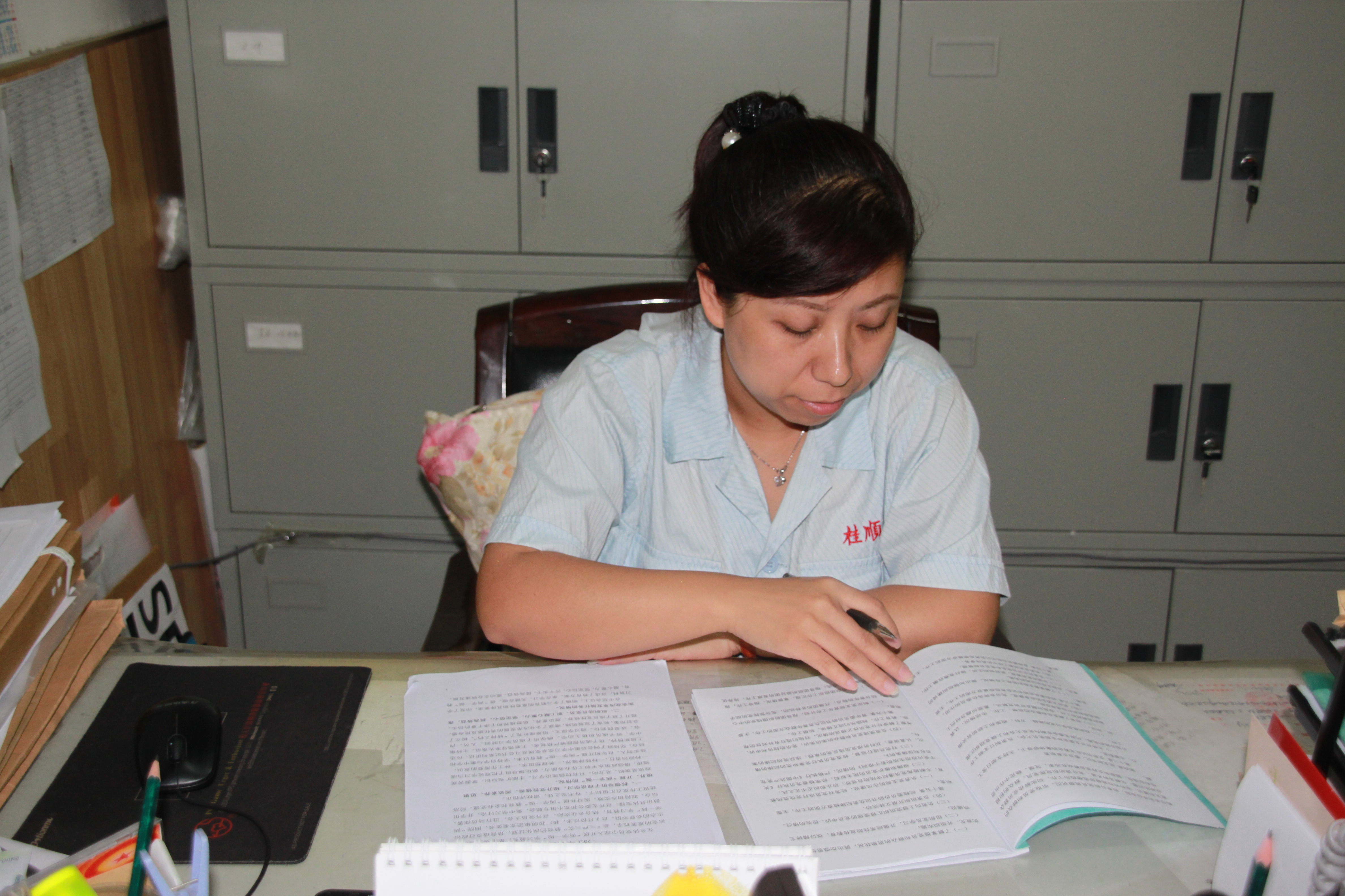 楫維維不但做好黨務(wù)工作和紀檢專職干部工作,還負責(zé)人力資源工作,另外她還帶領(lǐng)著一位辦公室職工承擔(dān)企業(yè)的宣傳、后勤、工會、信訪、法務(wù)、檔案等多項工作。雖然所承擔(dān)的工作量大,涉及面廣,但她還是不厭其煩、從無怨言。那么多項的工作內(nèi)容,在她干起來是得心應(yīng)手、有條不紊,大家都夸她能干,但其實很多時候這種能干,都是她自己加班加點換來的。每個早晨,她總是第一個來到辦公室,而一天的工作結(jié)束后,又總有她的身影還在辦公室里停留,她總是希望每天都能多干出一點來。面對著這樣的工作量,她從沒說過辛苦,因為在她看來這正是自己不斷提升,不斷完善的最好的機會,這種不知滿足的工作精神鼓舞著她,推動著她不斷的前行。
