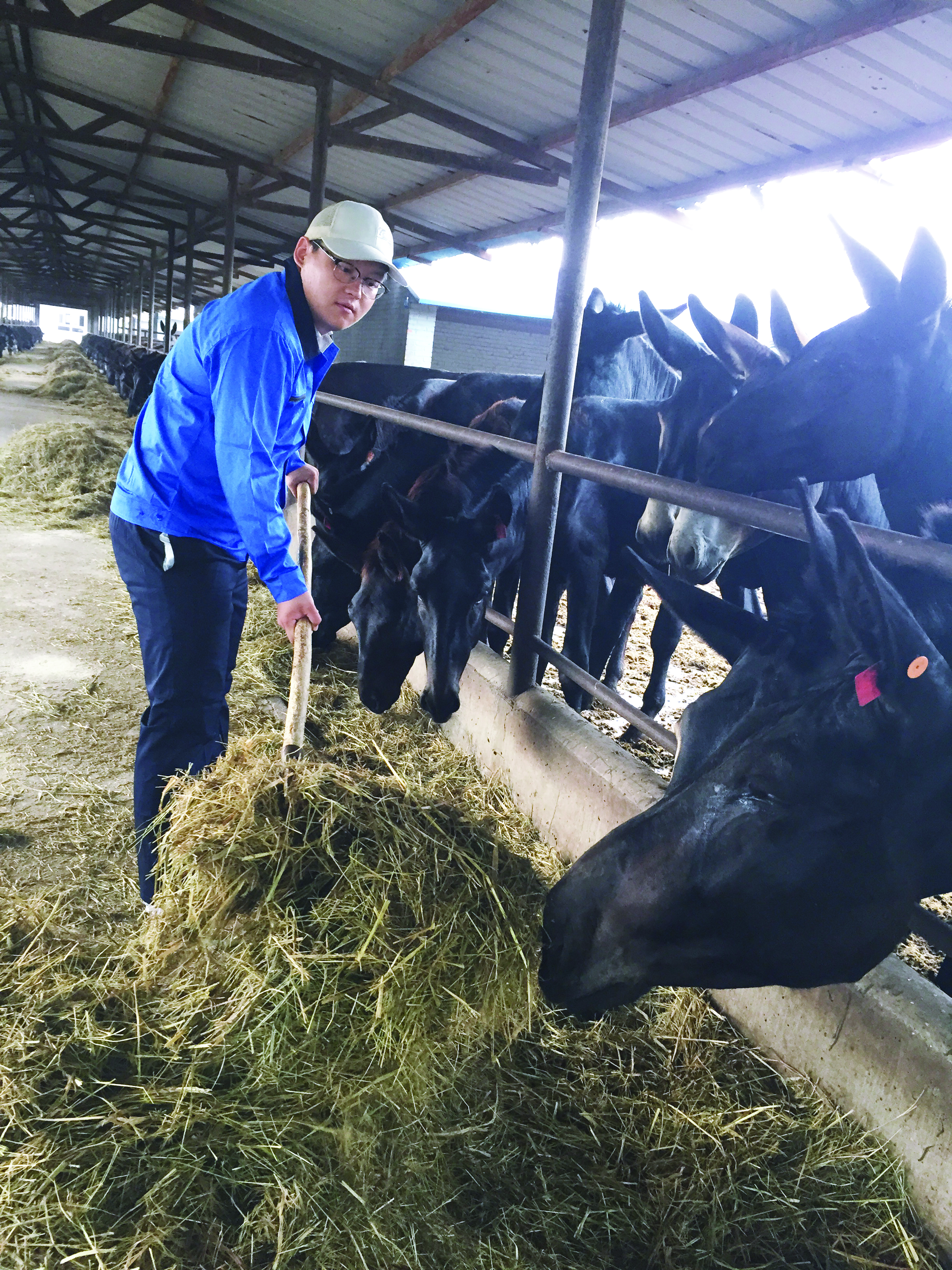 2010年6月,剛剛畢業(yè)的劉曉風,正式加入了天寧公司所屬的龍?zhí)煨竽琉B(yǎng)殖有限公司,成為一名養(yǎng)驢工人。龍?zhí)旃咀鳛槿珖?guī)模化養(yǎng)殖種驢的試點,企業(yè)發(fā)展的初期必然是需要大家努力摸索和積累的。但養(yǎng)殖行業(yè)條件差、環(huán)境臟、工作苦也是眾所周知的。2012年夏天驢場小驢兒群發(fā)肺炎,每日的八小時早已不能滿足治療時間。他住在場里,就帶頭在晚飯后給生病的小驢逐個測量體溫、輸液。驢場的夏天蚊子特別多,多到驢圈里的驢全都抽著尾巴繞圈兒走。他拿著輸液管、助聽器看守著一頭頭小驢駒,這一晚上下來身上被咬的少則十幾個包,多則幾十個包。就這樣堅持了半個月,生病的小驢就像孩子感受到父母的期盼一樣,都慢慢的好了起來。