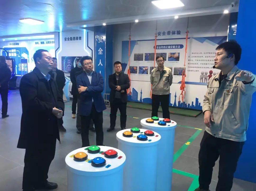 儀式結(jié)束后,首期培訓(xùn)班學(xué)員進(jìn)入多媒體宣教室進(jìn)行消防安全知識學(xué)習(xí)。與會(huì)領(lǐng)導(dǎo)對安全培訓(xùn)體驗(yàn)中心各模塊的組成、體驗(yàn)?zāi)康摹Ⅲw驗(yàn)效果等逐一進(jìn)行了了解,并對VR安全體驗(yàn)、電力安全體驗(yàn)等模塊進(jìn)行了體驗(yàn),對大數(shù)據(jù)中心展現(xiàn)的智慧工地、電站智能運(yùn)維系統(tǒng)等一系列模塊表示高度贊揚(yáng),并現(xiàn)場通過指揮調(diào)度平臺(tái)對房地產(chǎn)公司下屬單位進(jìn)行了指揮連線。